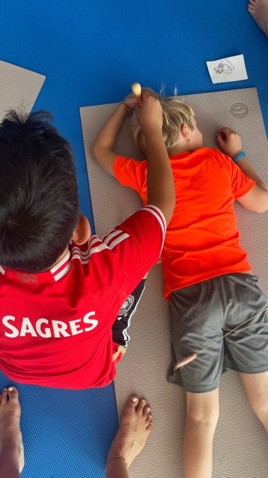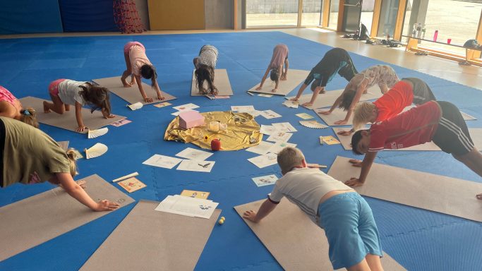 Ein wichtiger Bestandteil der Stunden ist es, auf unseren Körper zu hören und besser zu verstehen, was er braucht. Zum Abschluss nehmen wir uns viel Zeit, um zu entspannen. Dabei können die Kinder malen, Geschichten hören oder sich bei sanften Massagen entspannen.